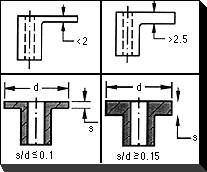 To obtain sufficient uniformity of compact density the s/L ration should not be lower than 1:4. From the point of view of the behaviour in service, in certain cases a 1:6 ration may be allowable. Other less favourable ratios should be considered case by case. In structural parts subject to high stresses the H/D ratio should not be greater than 5, for the same reason.
