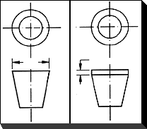 Completely conical parts may cause the upper punch (diameter “d”) to jam in the die during pressing.